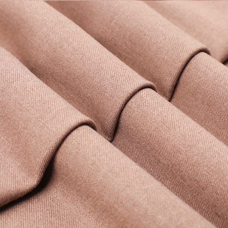 Viskosefiber, som en regenerert fiber oppnådd ved kjemisk behandling av naturlig cellulose, har det største trekket med myk berøring. I den rynkebestandige og myke berøringen Polyester Viscose Stretch Twill, gjør tilsetningen av viskosefiber det generelle berøringen av stoffet mer delikat og behagelig. Denne myke berøringen gjør ikke bare at klærne passer til huden bedre når de brukes og reduserer friksjonen, men gir også en elegant tekstur til klærne.