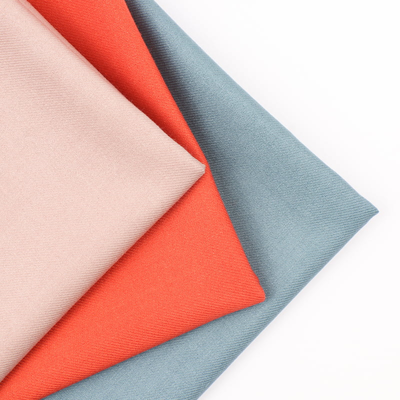 I tillegg til sin myke følelse og gode fuktighetsabsorpsjon og pusteevne, har Viscose også utmerket glans og dyrebarhet. Dette gjør rynkebestandig og myk berøring Polyester Viscose Stretch Twill mer visuelt vakkert og sjenerøs. Enten det er mørke eller lette toner, kan viskose gi en unik glans og tekstur til stoffet, noe som gjør klærne mer iøynefallende.