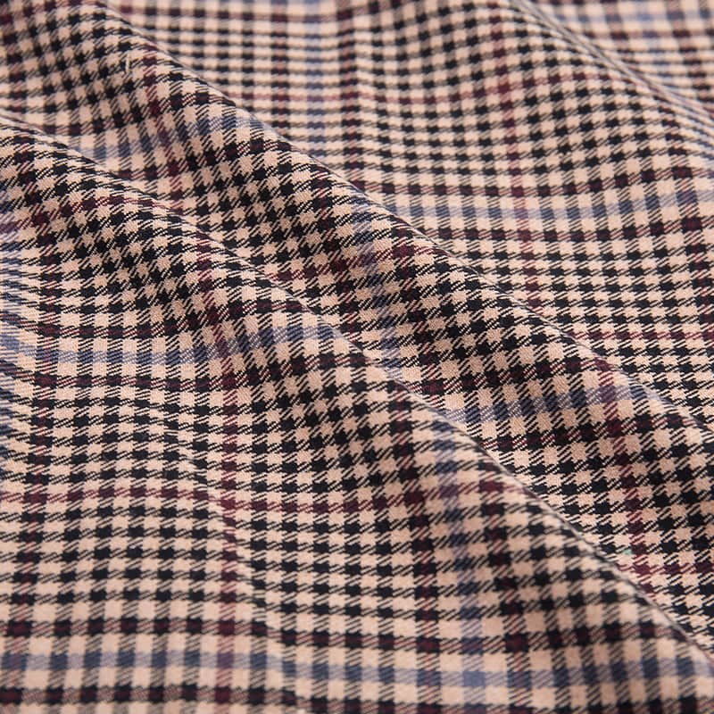 Farget houndstooth-garnfarget stoff forfølger mangfold og personlig uttrykk i fargedesign. I tillegg til det tradisjonelle svart -hvite, moderne design, legger mer oppmerksomhet til innovasjonen og fargeskiftet. Innføringen av myke toner som lysegrå og lysebrun beriker ikke bare den visuelle effekten av stoffet, men gjør også den generelle designen mer i tråd med moderne estetiske trender. Valget av disse fargene tar ikke bare hensyn til de aktuelle anledninger av stoffet, men vurderer også fullt ut de personlige behovene til forbrukerne, noe som gjør hvert stoff unikt og i stand til å vise den unike smaken på brukeren.